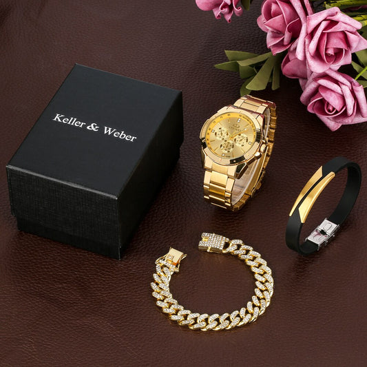 Montre à quartz en acier inoxydable pour hommes mode luxe.