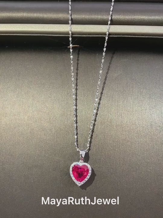 Collier de pierres précieuses en forme de cœur rouge pour femmes.
