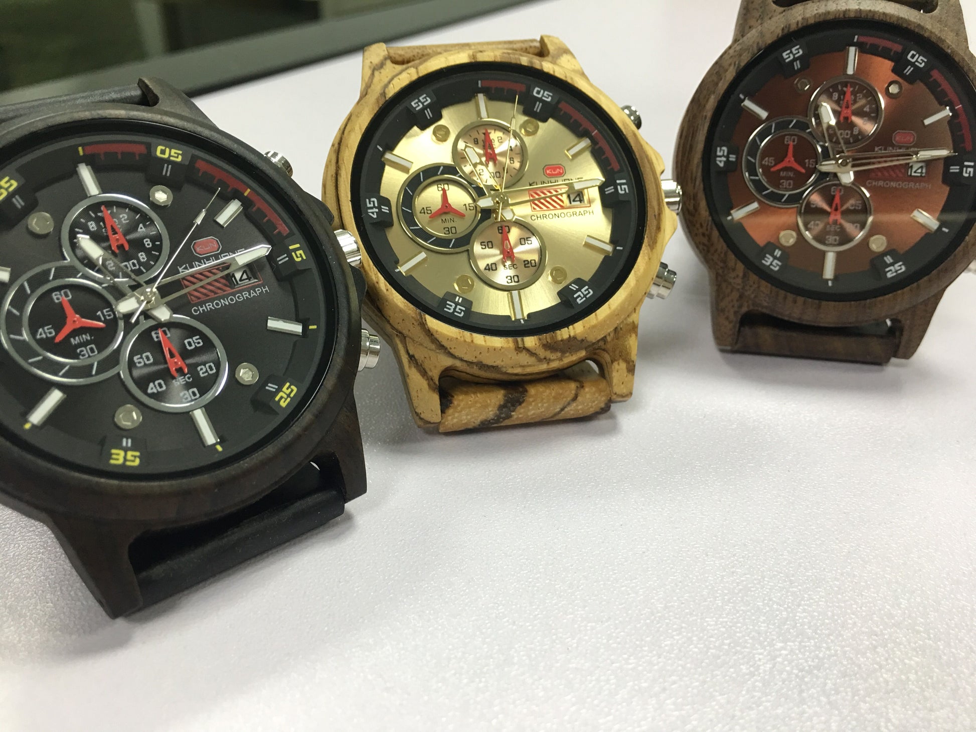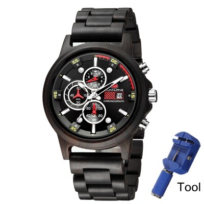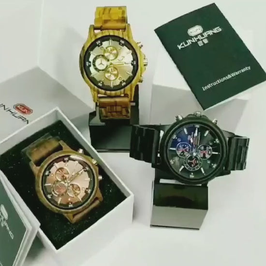 Montre en bois de luxe multifonction pour hommes,affichage de la date.